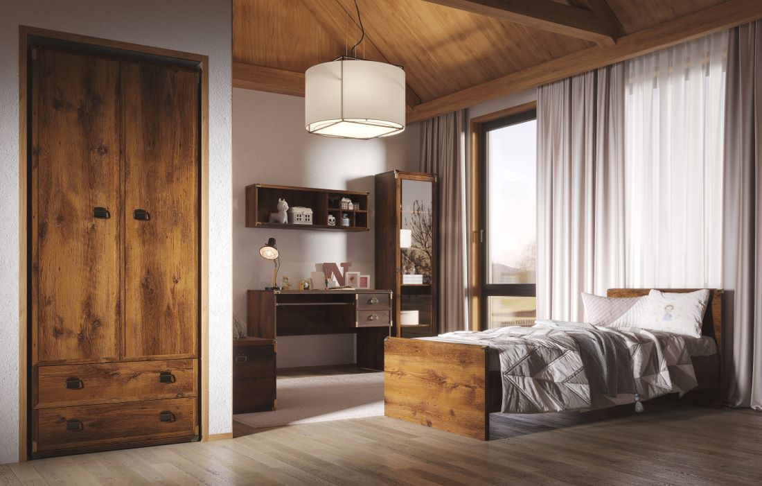 Что главное в детской? Удобная кровать? Большой шкаф? Или функциональный письменный стол? Безусловно, все это важно, но главное - это простор для воображения! Благодаря коллекции Индиана ребенок окунется в мир Дикого Запада, побывает в трюме пиратского корабля и даже сможет спрятать все свои сокровища в настоящий сундук! Здорово, не правда ли?