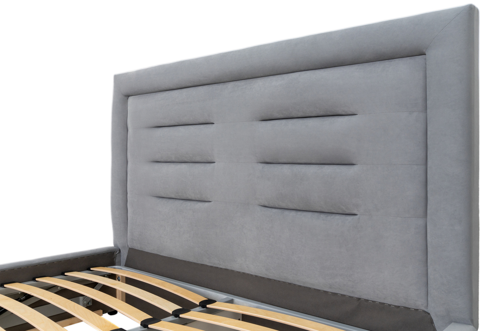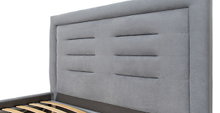 Уютная и комфортная кровать с мягким изголовьем. Высокое изголовье, выполненное в технике «каретная стяжка» свидетельствует о том, что у владельца этого произведения искусства безупречный вкус. Благодаря высокой посадке матраса, вставать с кровати будет очень удобно и легко.