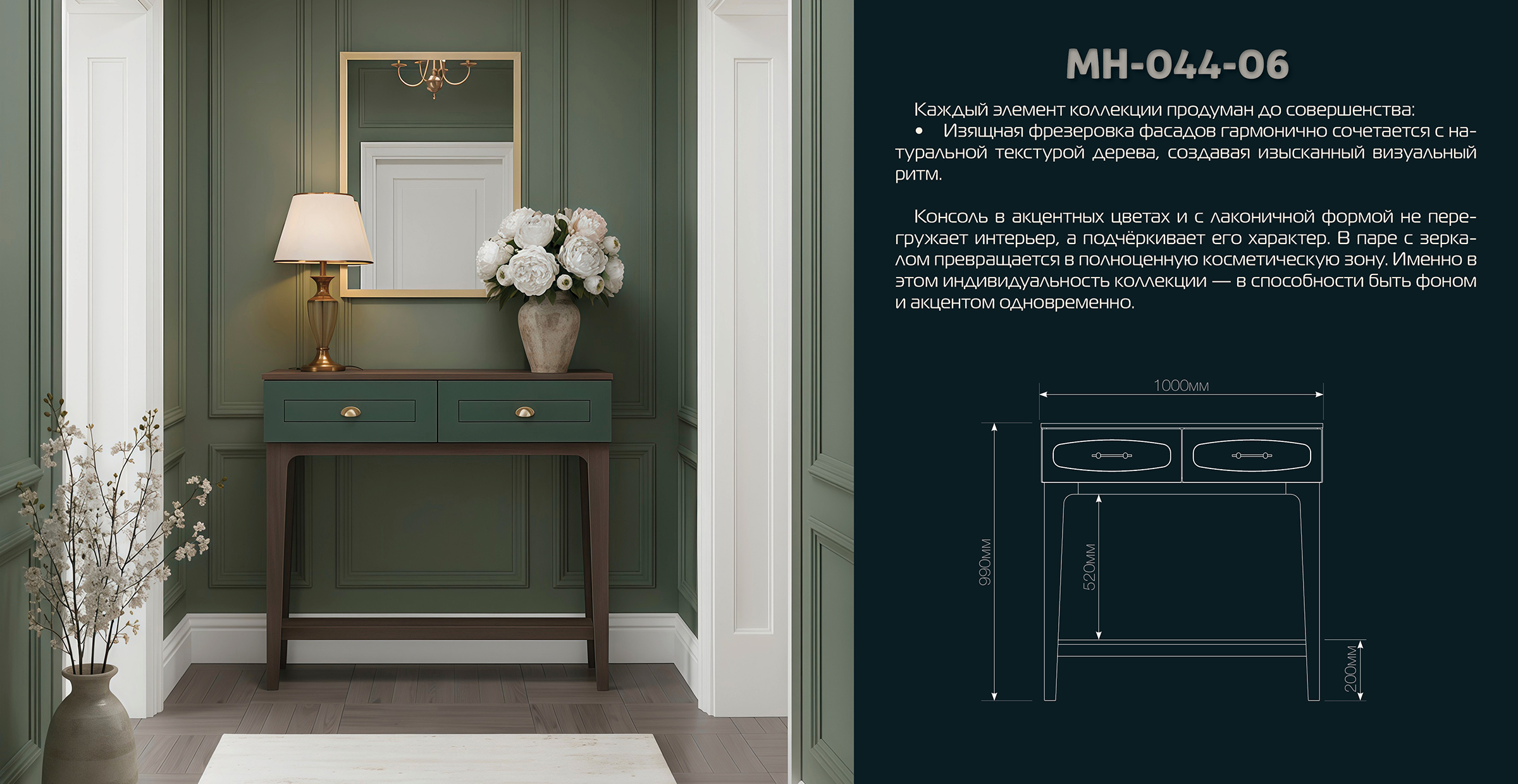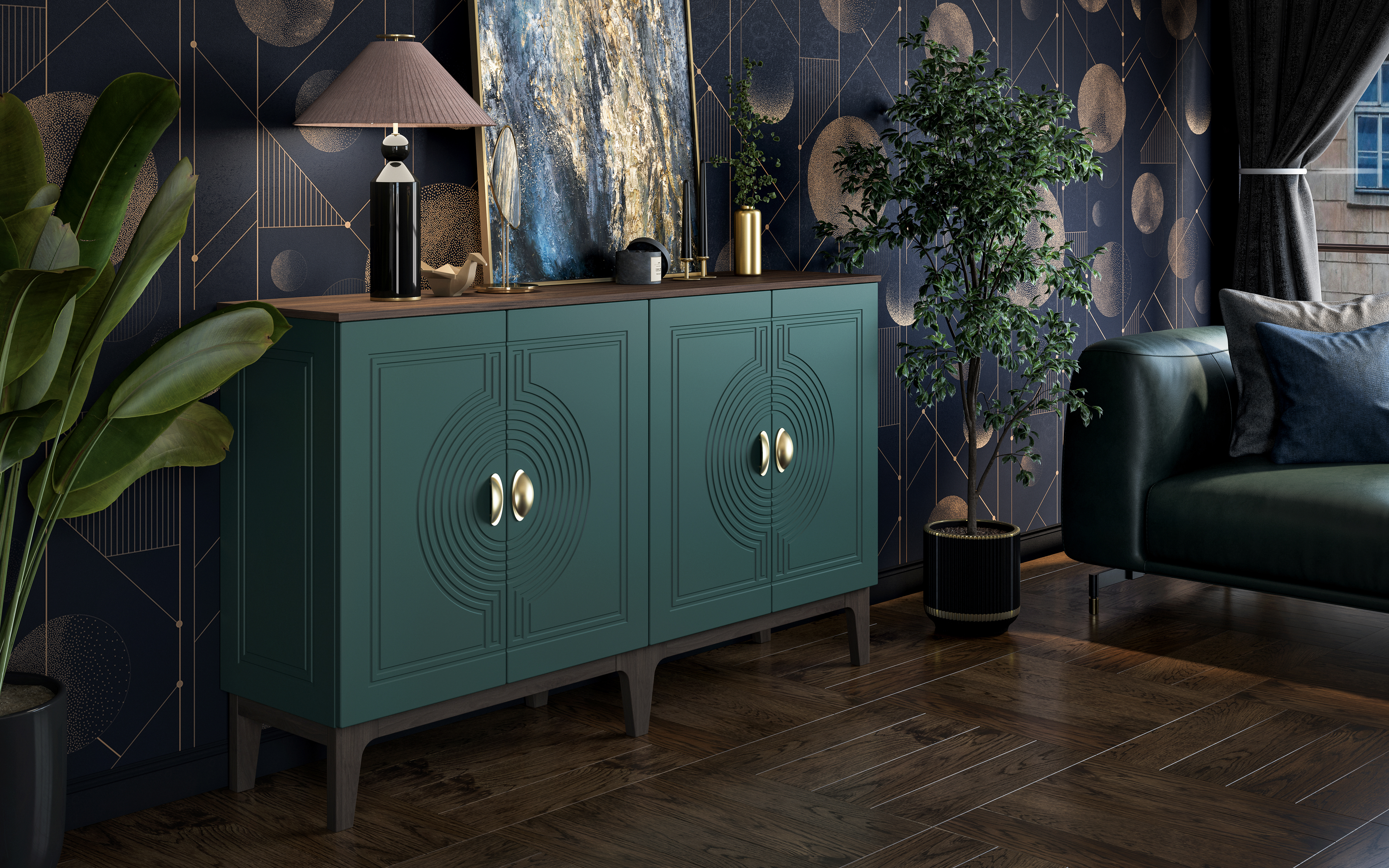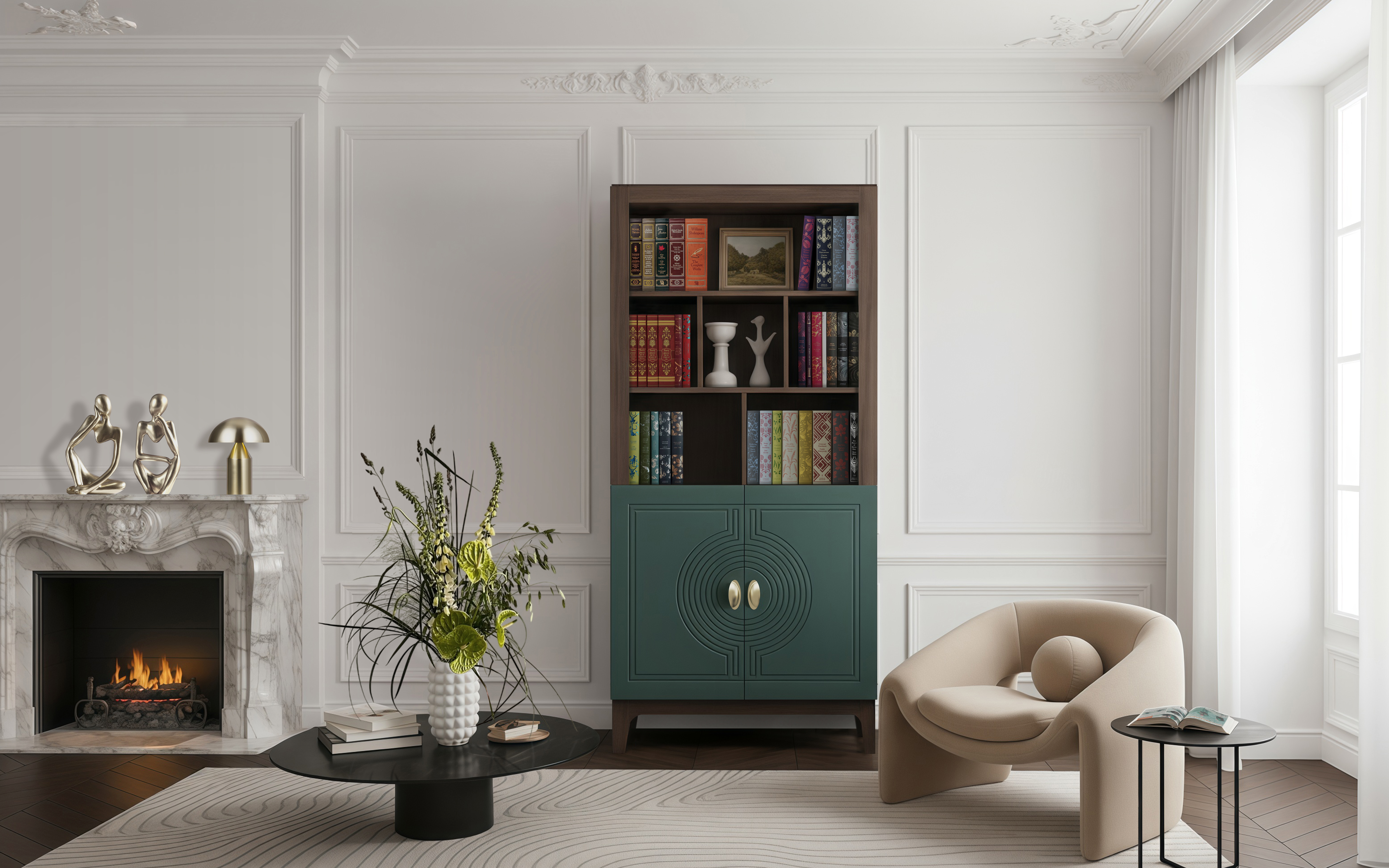 Сочетание насыщенного корпуса Гикори Прадо и акцентного фасада Комбу Грин формирует образ, в котором выразительность встречается с утончённостью. Тёплая древесная текстура наполняет интерьер уютом, а глубокий зелёный фасад придаёт пространству характер и индивидуальность.