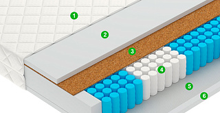 | Материал | Кокосовая койра, Блок независимых пружин, Чехол, Smartflex |