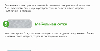 Усовершенствованный пружинный блок TFK R1000 7-Zone с усиленным ортопедическим эффектом обеспечивает позвоночнику правильную поддержку благодаря семи выраженным зонам поддержки. |