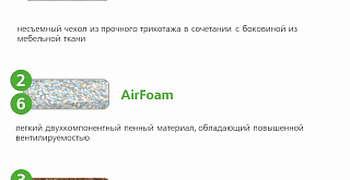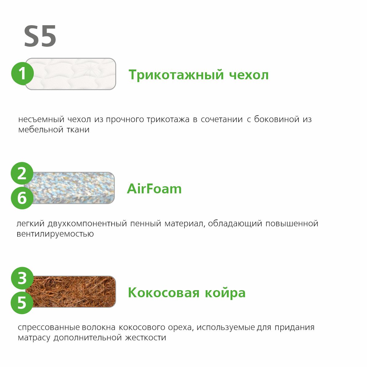 | Материал | Кокосовая койра, Блок независимых пружин, Чехол, Пена AirFoam, Трикотаж |