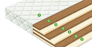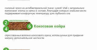 Натуральный материал, состоящий из спрессованных волокон кокосового ореха, полностью пропитанных латексом. Слои из прочной и долговечной кокосовой койры используются для придания матрасу дополнительной жесткости. |