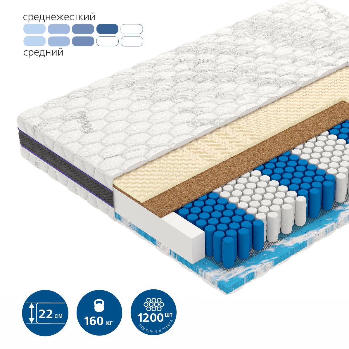 | Уровень жесткости | среднежесткий, средний |