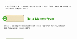 Эргономика и инновация – принципы, заложенные в трио уникальных высокотехнологичных эластичных пенных материалов нового поколения, обеспечивающих высочайший уровень комфорта во время сна.