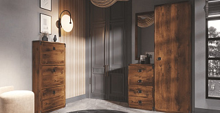 Коллекция Индиана не похожа ни на классическую, ни на современную мебельную моду. Имитация состаренного дерева, металлические накладки на углах, ярко выраженная древесная структура - далеко не все отличительные особенности коллекции. Благодаря широкому ряду элементов системы вы без труда обустроите прихожую.