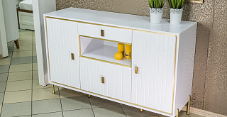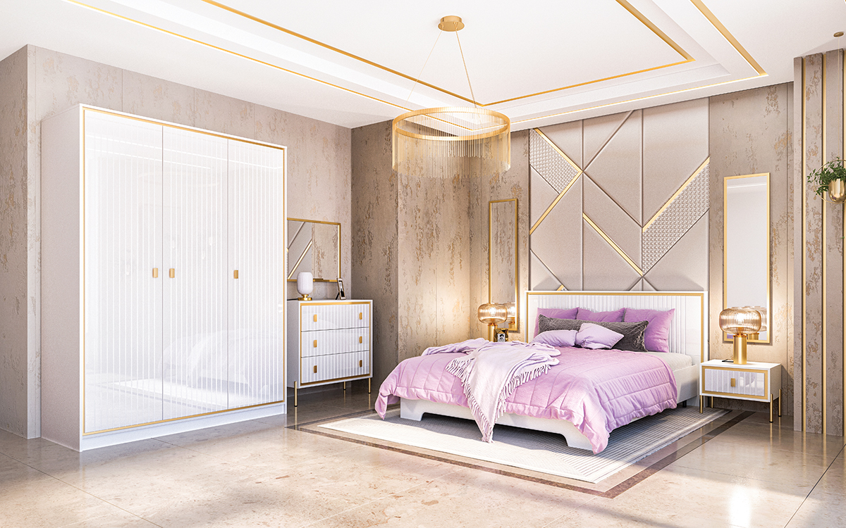 Коллекция Люксор объединяет эстетику ар‑деко и функциональность минимализма. Глянцевые фасады с игрой света и тени, зеркальные отражения и металлический блеск создают выразительный интерьер. Строгая геометрия форм дополнена золотой фурнитурой и лёгкими стеклянными витринами, что делает коллекцию современным трендом.